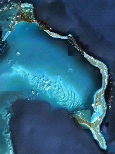 Eleuthera Island (satellite photo) is a very narrow, linear-arcuate