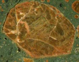 phenocryst (crystal is 9.5 mm across) in blairmorite from Blairmore, Alberta,