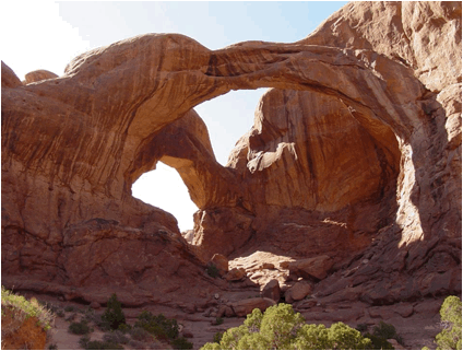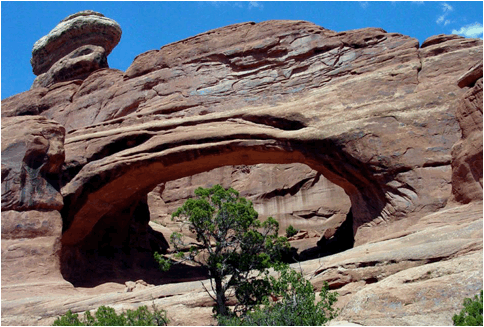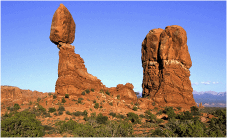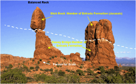 rocks). Delicate Arch is developed at the contact between the Slick Rock