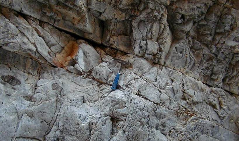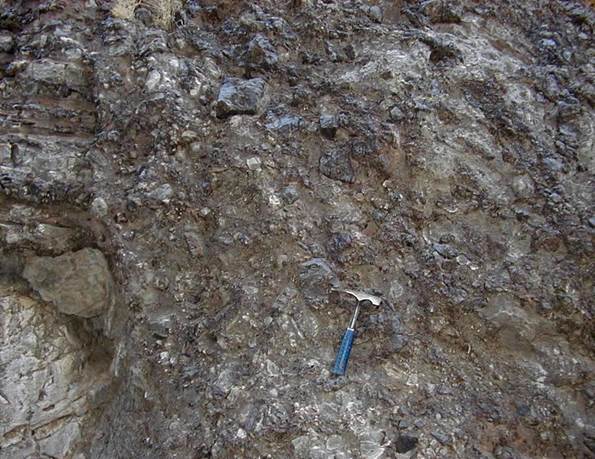 Ls. The photo below shows a fault breccia developed in the Anchor.