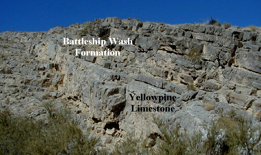dipping eastward. Yellowpine Limestone-Battleship Wash Formation
