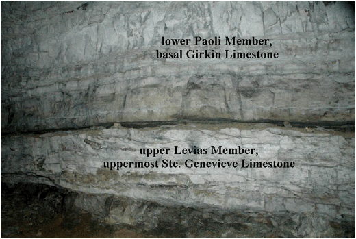 dark interval of Bethel Member near the ceiling, and walls of mostly Paoli