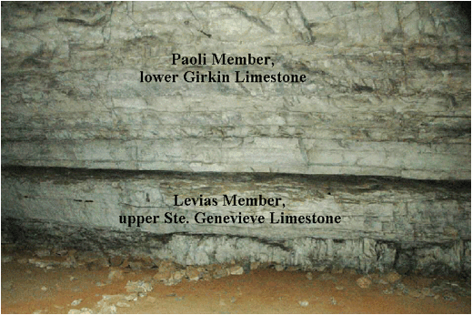 Paoli Member (Girkin Limestone). The gray limestones below that are upper