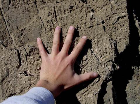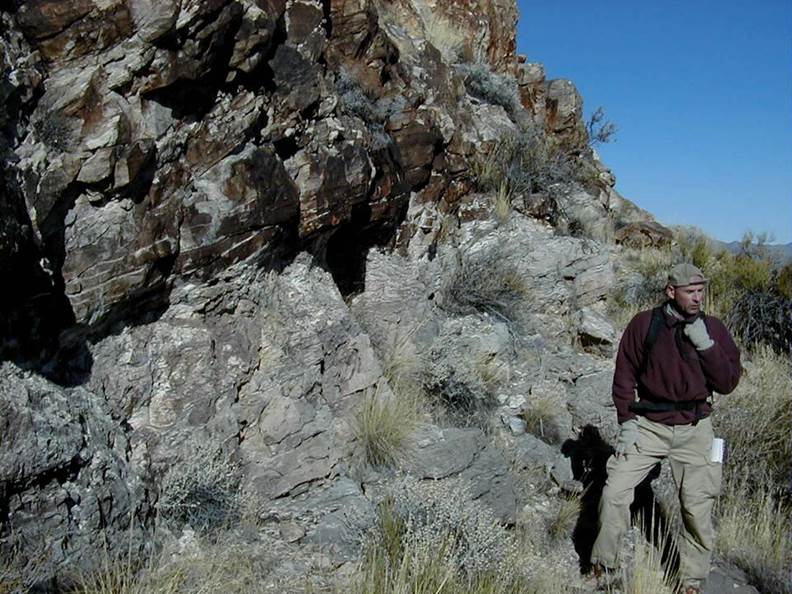 (well-cemented quartz sandstones). Ernie Slucher for scale (Ohio