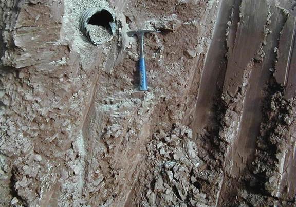 2004 photos of a construction cut exposing very soft, grayish to reddish gray