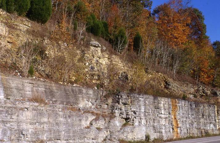 Rt. 61 roadcut south of Burkesville, a little south of the Cumberland River,