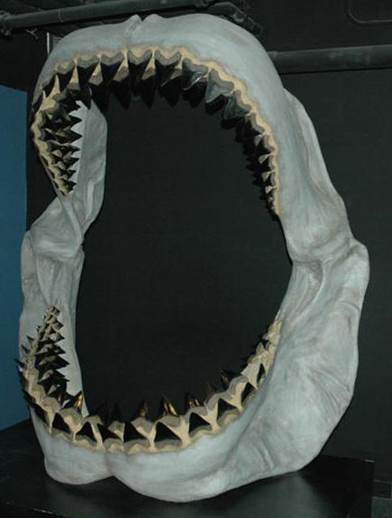 fossil remains are teeth. The teeth of this ancient giant shark had serrated