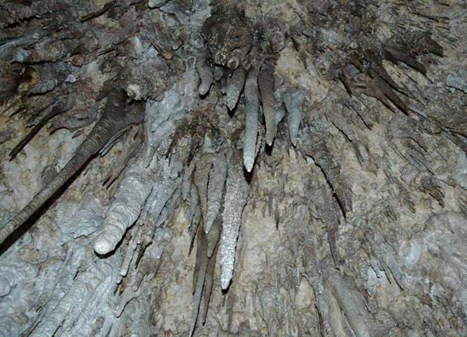results in large/long stalactites hanging from cave ceilings. Rapidly