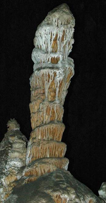 dripstone (axial portions) and flowstone (flanking portions). The taller