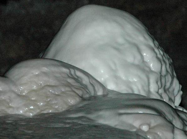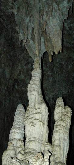 water results in relatively narrow & tall stalagmites. Very rapidly