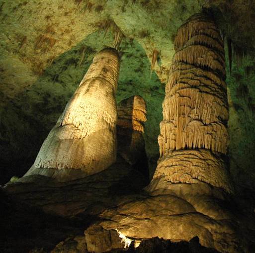 flanks covered in flowstone), northwestern portion of the Big Room, Carlsbad