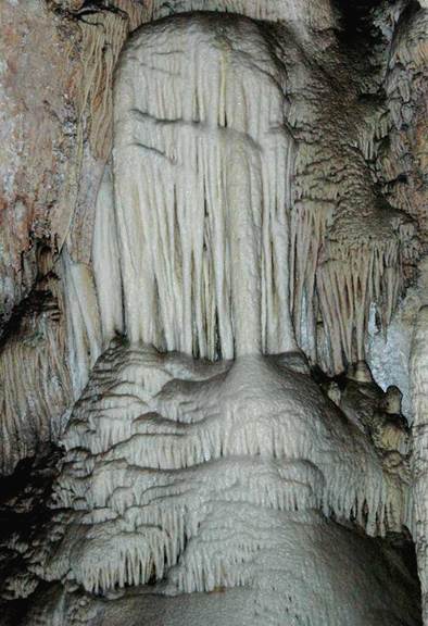 Flowstone covering a stalagmite,