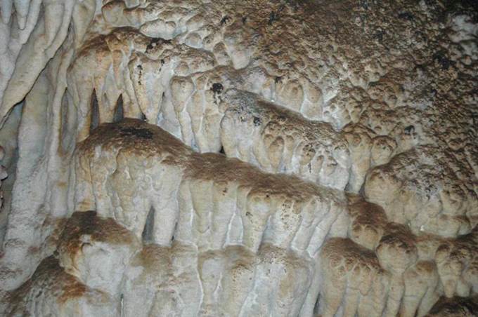 Flowstone can be seen on the floors and walls of caves. It also frequently
