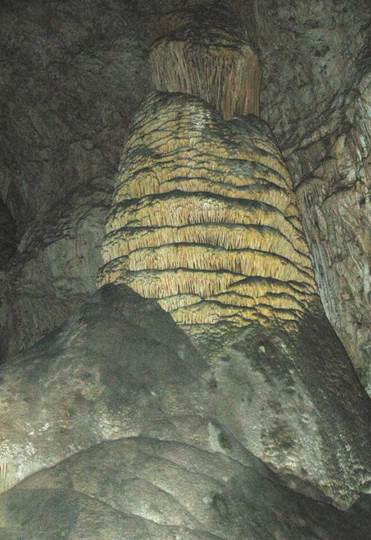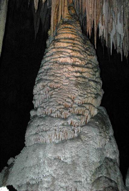 Caverns), a large, flowstone-covered stalagmite composed of nice white