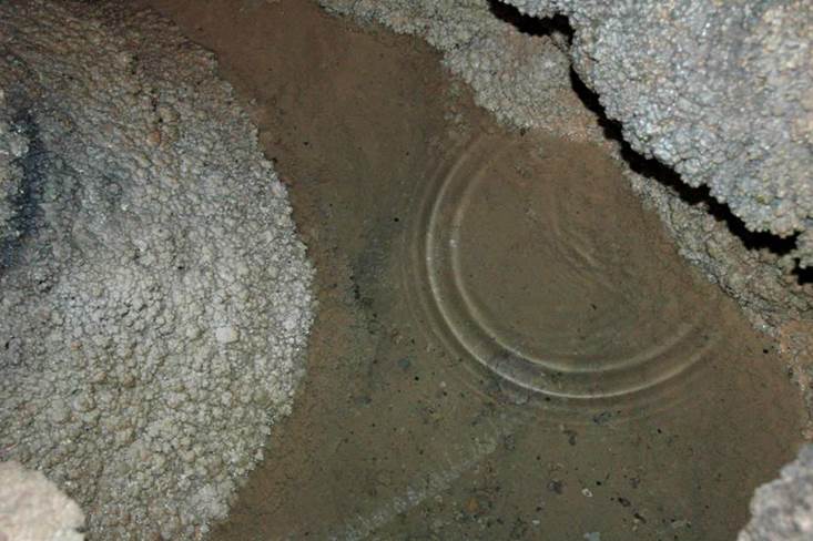 supersaturation of pool water. Dripping prevents the cave pearls from