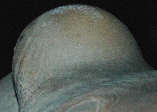 of the large stalagmite shown above. The almost-smooth upper portions of