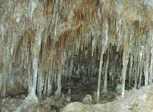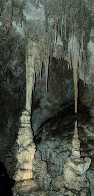 Caverns), consisting of flowstone-covered columns and stalactites (some with