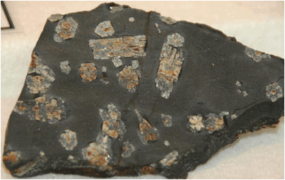 Cherry blossom stones are hosted in a matrix of hornfels,