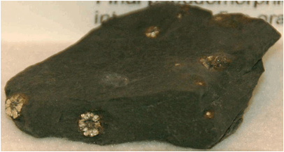alteration (heating & chemical alteration) of shales by nearby lava or
