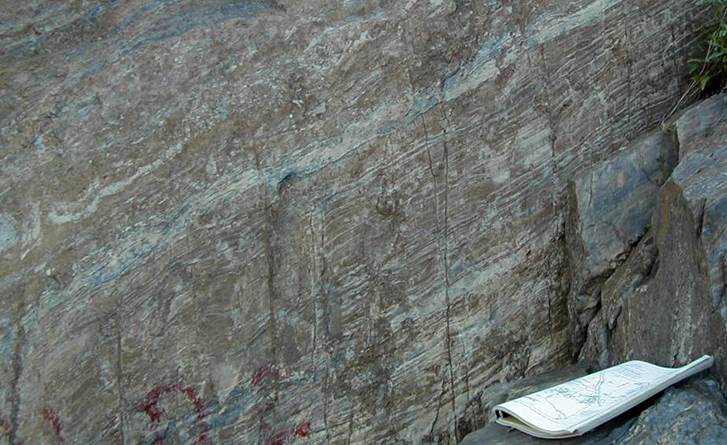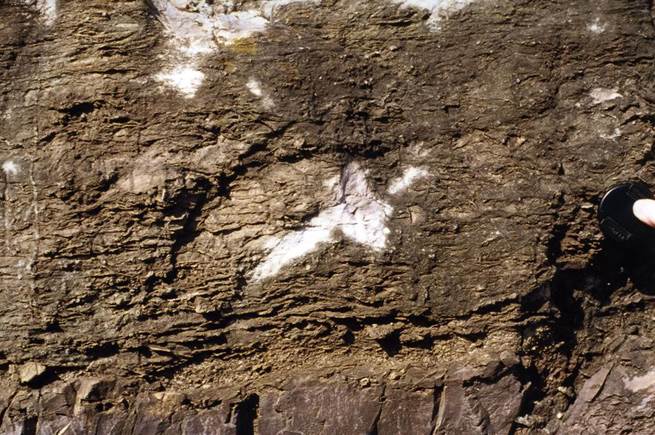 across). The original mudshale's horizontal bedding is