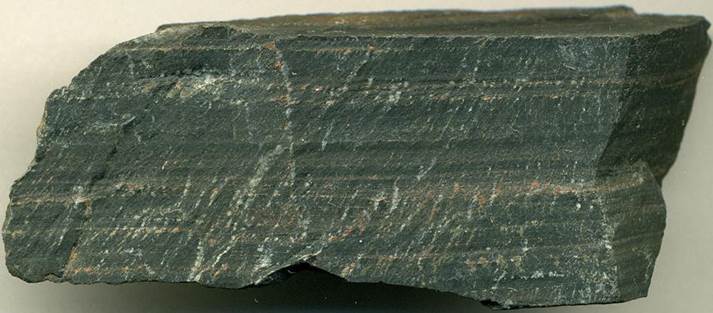 (foliation plane). Locality: unpaved road near gravel pits in the