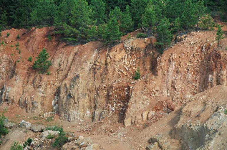 Coleman Quartz Mine - wall of the main pit showing abundant hydrothermal