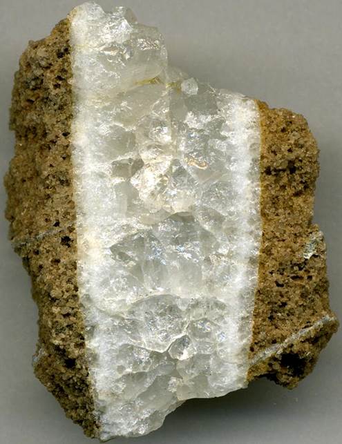 Hydrothermal vein quartz (white) intruding quartz arenites (light brown) of