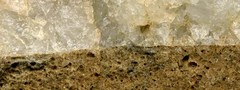 Sandstone. Well-formed hexagonal quartz crystals are common at Coleman