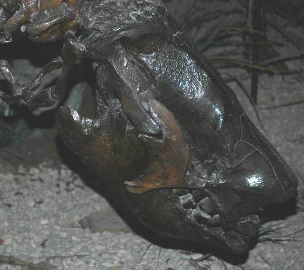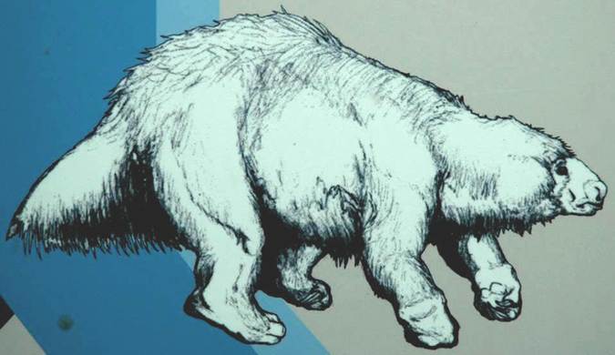 Living sloths are medium-sized, very slow-moving, arboreal mammals of South America & Mesoamerica. During the middle & late Cenozoic, several large, ground-dwelling sloth species existed in the Americas. Shown below is one of the giant ground sloths known from the late Pleistocene of North America. This is Harlan’s ground sloth, Paramylodon harlani (a.k.a. Glossotherium (Paramylodon) harlani), which got to be 2 meters long.