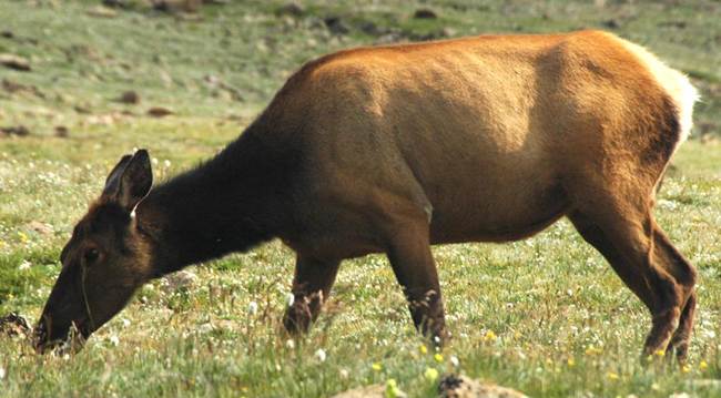 Cervus canadensis (Erxleben, 1777) - North American elk (Vertebrata, Mammalia, Artiodactyla, Cervidae) on Trail Ridge, Rocky Mountains National Park, northern Colorado, USA. Above: male elk. Below: female elk.