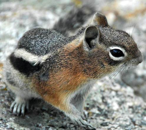 Callospermophilus lateralis (Say, 1823) - golden-mantled ground squirrel (Vertebrata, Mammalia, Rodentia, Sciuridae) at Horseshoe Park Overlook, northeastern Rocky Mountains National Park, northern Colorado, USA.