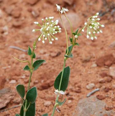 Abronia fragrans Hooker, 1853 - sand verbena (Plantae, Angiospermophyta, Caryophyllales, Nyctaginaceae) with closed flowers in Park Avenue, Arches National Park, eastern Utah, USA. The nyctaginaceans are a group of almost 300 species of herbaceous plants in tropical, subtropical, and sometimes temperate settings. Abronia fragrans is a perennial that occupies dry sandy settings in much of western North America. Its whitish, trumpet-shaped flowers are famously sweetly scented, and occur in subspherical clusters.