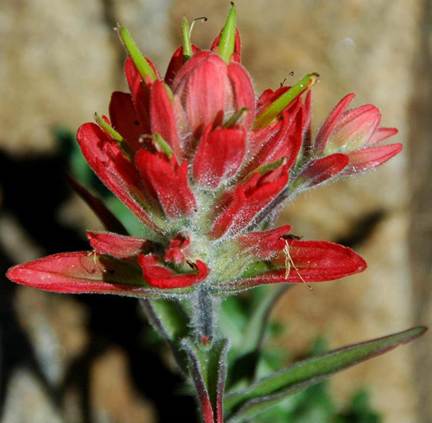 Castilleja miniata Hooker, 1838 - giant red paintbrush (Plantae, Angiospermophyta, Lamiales, Orobranchaceae) in Rocky Mountains National Park, northern Colorado, USA. This colorful plant occurs in foothill to subalpine environments of western North America. Giant red paintbrushes are partially parasitic and obtain nutrients from the root systems of nearby plants.