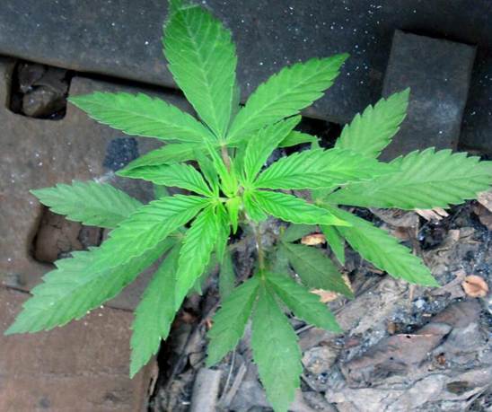Cannabis sativa Linnaeus, 1753 - marijuana plant (Plantae, Angiospermophyta, Rosales, Cannabaceae). This famous, psychoactive plant is native to central Asia, but has been extensively cultivated, resulting in a near-worldwide distribution. This escaped individual is growing along a railroad track at Putnam Hill in Zanesville, Ohio, USA.