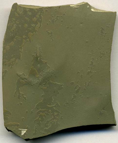 Fossil bird footprint (above & below; rock is 5.2 cm across) impressed on grayish-green argillaceous lime mudstone (below: sole of above slab showing underprint/undertrack). This comes from Utah's famous Soldier Summit Fossil Track Horizon. A persistent horizon of intensely bioturbated argillaceous lime mudstone occurs in the Eocene-aged Green River Formation near Soldier Summit (southern Wasatch County, north-central Utah, USA). This area was once the southwestern shore of ancient Lake Uinta. This print was made by some wading bird, probably something like a sandpiper (see Moussa, 1968).