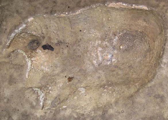 Apatosaurus footprint (reproduction) from the Upper Jurassic of western America (public display, Field Museum of Natural History, Chicago, Illinois, USA).