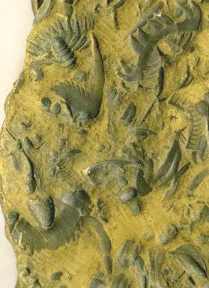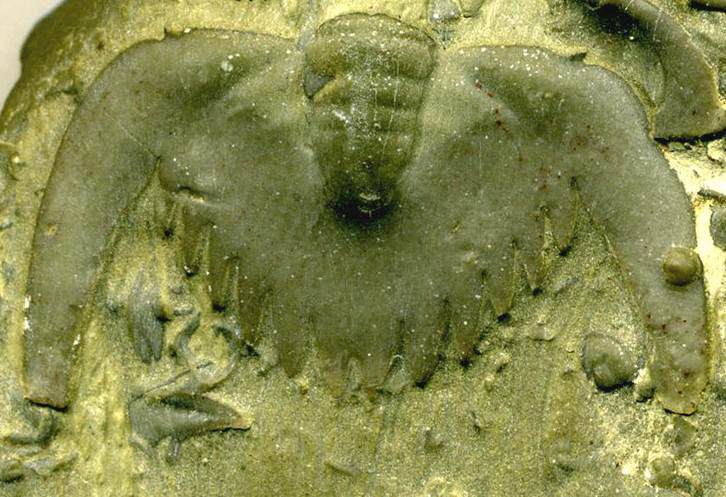 Batstone from the Kushan Formation (Cambrian) of Shandong, China. Note the flying bat shape of the pygidium at upper right (from Chang, 1921).