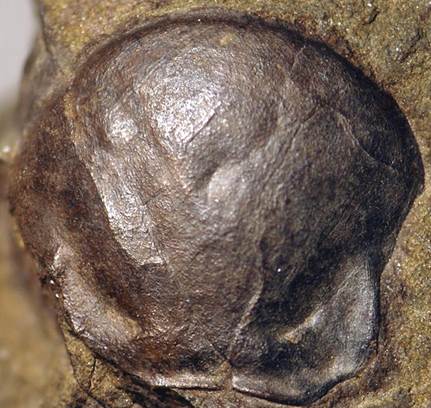 Paradoxides minor (Boeck, 1828) labrum (hypostome), or mouthplate (2.6 cm across at its widest) from the Jince Formation (Middle Cambrian) of Jince, Bohemia.