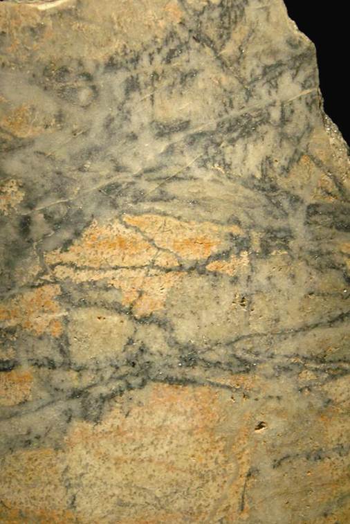 The 1st sample shown below is a large cut & polished slab of molybdenum ore from the Climax Mine. Note that the thicker mineralized veins tend to have quartz (light gray) making up most of the vein and molybdenite (dark gray) lining the walls of the vein. Compare that with the thinner veins which are principally composed of ~just light gray quartz or ~just dark gray molybdenite (such molybdenite-dominated thin veins are referred to as "moly paint").