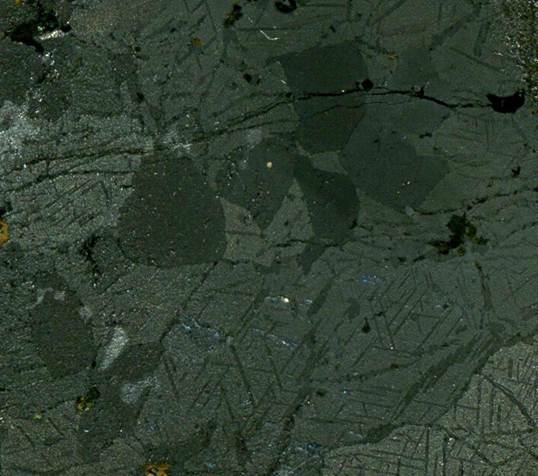 These rocks typically occur as Fe-Ti-oxide concentrations in anorthosite complexes. They appear to form as cumulates in cooling batholiths. The sample shown below is from a dike-like intrusive body, apparently the result of remobilized Fe-Ti-oxide cumulates.