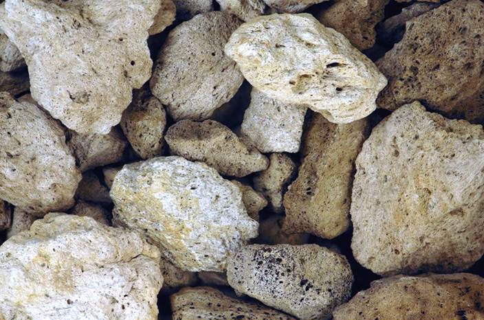 (pale-colored pumice at upper right is 2.7 cm long)