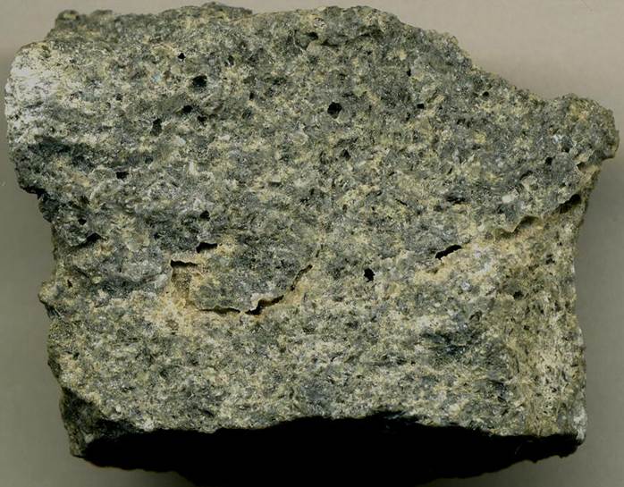 Natrocarbonatite (4.1 cm across) from a freshly flowing pahoehoe lava flow at Ol Doinyo Lengai Volcano back in 1963.  This is from sample CML-9 of Peterson (1990) - Contributions to Mineralogy and Petrology 105: 143-155.  Published chemical analyses on this very lava indicate that it has phenocrysts of gregoryite (77% sodium carbonate, 18% calcium carbonate, 5% potassium carbonate) and nyerereite (50% Ca-carbonate, 41% Na-carbonate, 9% K-carbonate), with a groundmass of 65% Na-carbonate, 20% Ca-carbonate, and 15% K-carbonate.