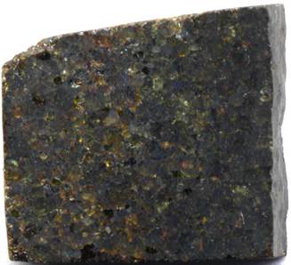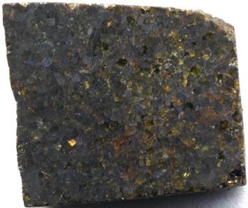 Brachinites are very rare, ultramafic, olivine-rich, achondrite meteorites. They represent pieces of asteroidal dunite. Very few recovered meteorites have been classified as brachinites. The rock shown below is a sample from the NWA 3151 Meteorite, the largest-ever identified brachinite. It was found in northwestern Africa in 2005.