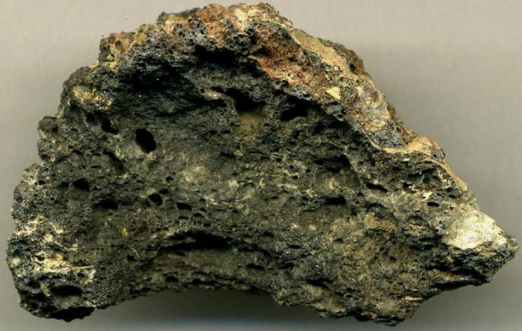 Lonar Impactite (1.7 cm across) from Maharashtra State, India. This scoria-looking rock is the result of a Late Pleistocene impact in Maharashtra State, India. The impact occurred at about 52 ky. The Lonar Crater is ~1.1 miles in diameter and is filled with water (Lonar Lake). The target bedrock consists of Cretaceous-Tertiary aged flood basalts - the famous Deccan Traps. The texture and chemistry of Lonar Impactite samples show that the original solid basalt has been converted to a frothy, glassy-like material. If I didn't know where this came from, I'd swear it was scoria from a cinder cone.