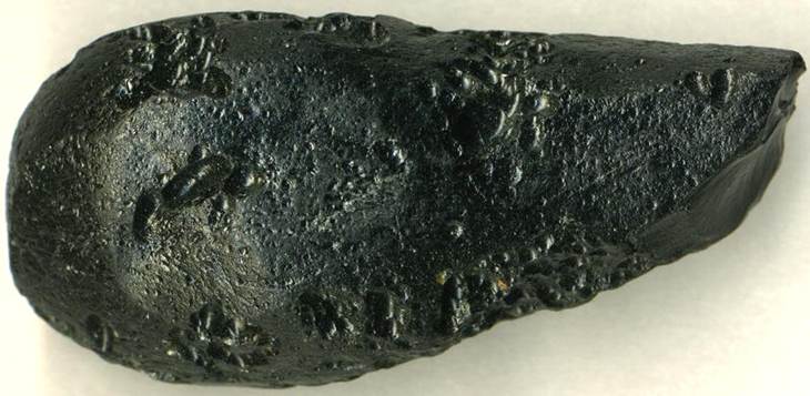 Large & small impacts have affected Earth since its formation 4.55 billion years ago. Compared with the intensely pitted and cratered Moon, Earth has relatively few preserved impact craters, because they have been destroyed by water & glacial erosion. Impact events are accompanied by tremendous amounts of heat, resulting in melting of much of the pulverized bedrock at ground zero. The melted material cools quickly, and falls back to Earth in the form of impact splash glasses (aka tektites). Tektites are principally composed of amorphous silica (SiO2). Broken surfaces show a conchoidal fracture. Tektites from different impact events are given different names.