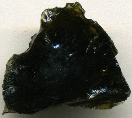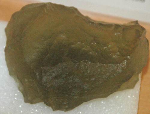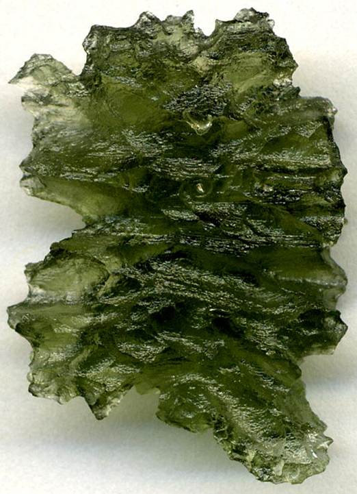 Moldavite (2.5 cm tall), derived from >4 meters below the land surface, below