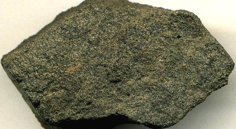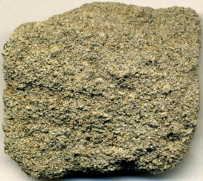 Peloidal phosphorite (4.6 cm across) from the Phosphoria Formation (Roadian Stage to Wordian Stage, lower Guadalupian Series, mid-Permian) at the Simplot Mine, southern Bingham County, southeastern Idaho, USA. This rock has economic value - it's a phosphate ore. The Phosphoria Formation is extensively mined in the Southeast Idaho Phosphate District. Phosphate and elemental phosphorus derived from processing of phosphorite rocks are used to make agricultural fertilizers and industrial chemicals.