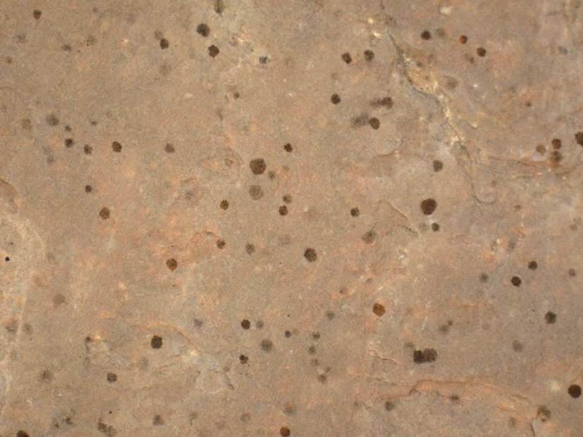Raindrop imprints are scarce, but highly diagnostic, sedimentary structures. They absolutely demonstrate that a particular bedding plane was subaerially exposed - it had to be land. Raindrop imprints are expected to be small circular to subcircular pits or craters on fine-grained siliciclastic sediment surfaces. They may be associated with mudcracks and terrestrial fossils (such as fossil ferns).