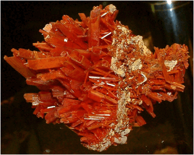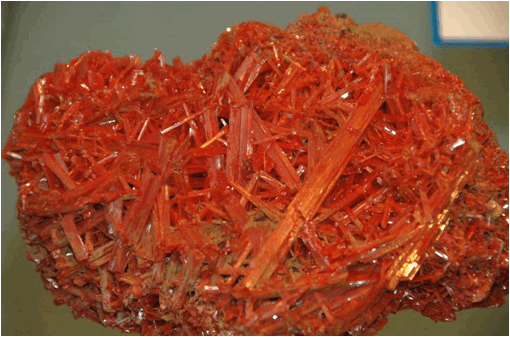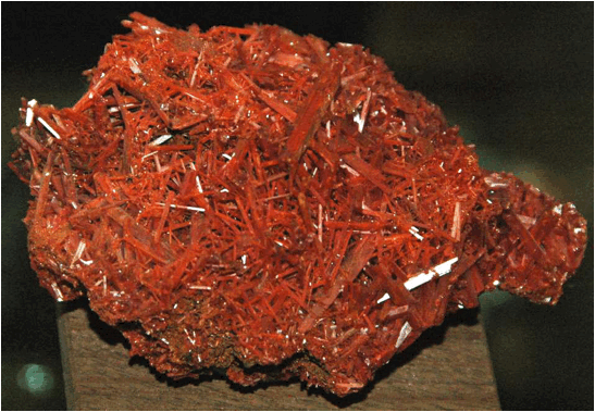 brilliantly lustered lead chromate mineral (PbCrO4). The lead