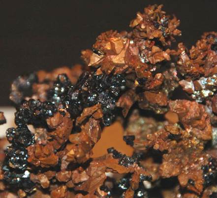 (blackish) on native copper from the Poteryaevskoe Mine, northwestern end of
